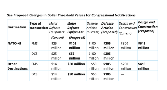 However, H.R. 3613 goes far beyond modest inflation adjustments in some cases. It would more than quadruple the notification threshold for sales of Major Defense Equipment to NATO+5 countries—from $25 million to $105 million—and more than double the threshold for all other countries—from $14 million to $30 million, among other changes (see below table for more detail). These dramatic increases are far beyond what the Task Force recommended earlier.